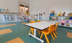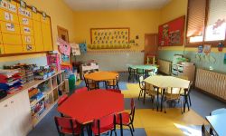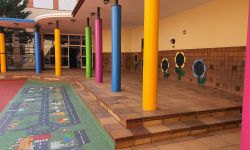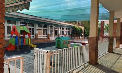 En la zona central, entre els tres edificis, hi ha les aules i el pati de la Llar d’Infants i de P3.