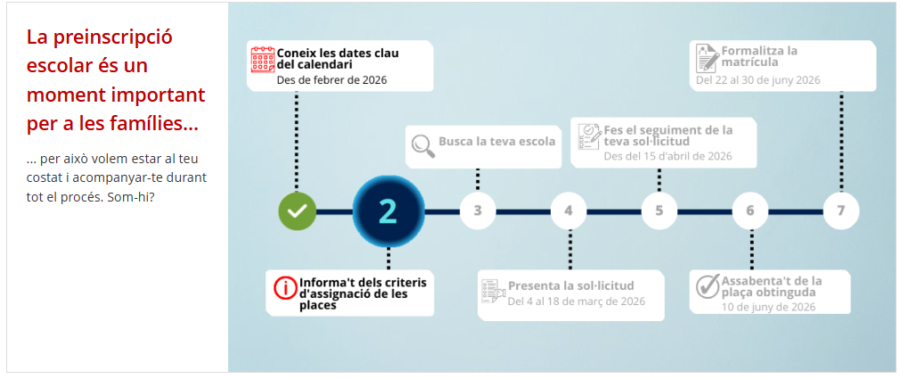 Recorda que la documentació acreditativa tant dels criteris prioritaris com dels complementaris s’ha d’adjuntar a la sol·licitud de preinscripció dins el període establert.